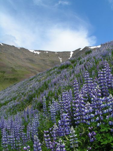 pretty purple wood lilies(??) There is a little walking path leading up to an observation