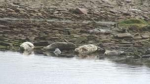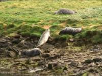 There is a large colony of seals (both common and grey), many of them howling loudly. As one of us has pointed out, they look like giant slugs, lying about lazily... |