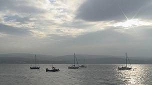 Morning sun reflecting on water. |