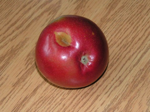 Line took a couple of apples out of the fridge, held this one and said "kiss my butt" - referring