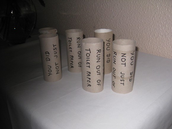 We saw these in the entrance area of the hall today, wondered who had been making some art actions. After the screening, we realise it had been Ava Lanche, a young female filmmaker from Berlin (who runs out of loo paper in her super 8 film.) |