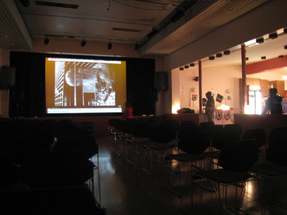 Finally back at the venue for the "experimental" shorts. It's a nice little hall, with an open bar area attached to it. The audience is generally very receptive, too, there's a lot of laughter during the films. |
