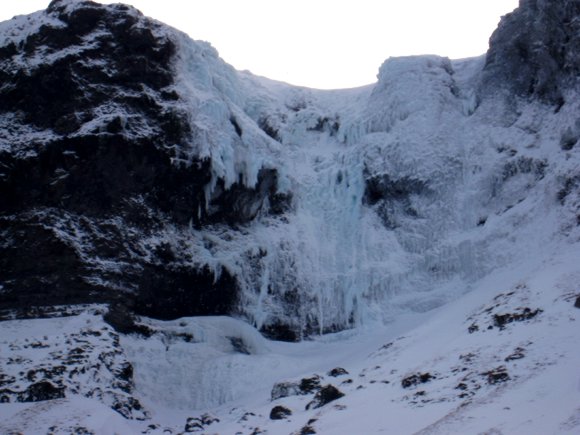 I admit I've tweaked the colour balance on this image - and still didn't get what I really saw. These giant icicles looked *so* blue from miles away and really stood out, but my camera couldn't capture that. Oh well. |