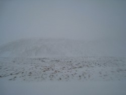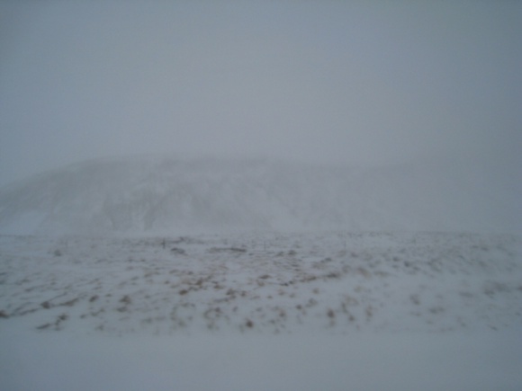Just as we leave Grundarförður in the late afternoon, it starts to snow heavily. The visibility on the road is really bad. So, from the car window, we got an abstract version of what we saw on the way up. |