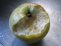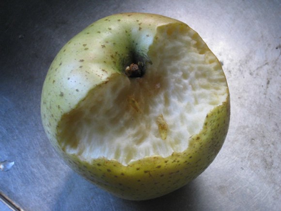 Friday, 25 December: There have been several mice attacks at night, which seem to be intensifying. This morning an apple on the alter was found in this state :-(( |