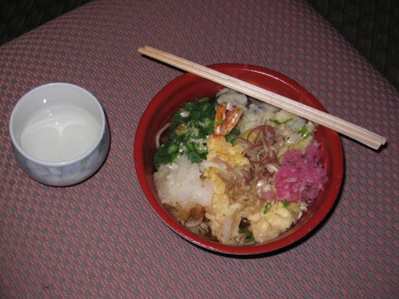 One traditionally eats soba noodles on New Year's Eve. I hit the local supermarket just before closing time and get all the ingredients (soba, prawn & veg tempura, okra, daikon, spring onions, etc.) for half price. So the year ends happily... |