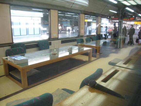 Thursday, 31 December: At Nagoya JR station, we see this special "Joyful Train" for group hire - with tatami mats, each car fitted with karaoke system (see the mike?)