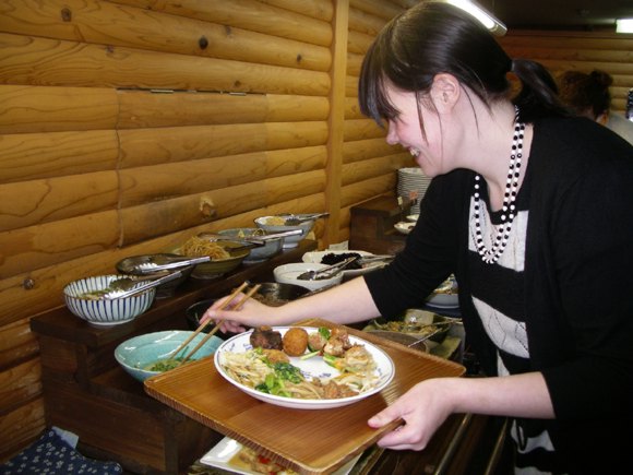 Only afterwards I noticed sign on the back of the truck, in English, "please don't take any photos, but if you buy some apples, it's ok" - oops! I hurried to Obanzai, an organic restaurant nearby, to meet Íris for an "eat as much as you want" meal (for about 8 pounds per head - and less than 4 pounds at lunchtime!) | |