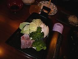 | Osaka, 9 April: An izakaya dinner with Mariko & Noriko. Too busy chatting to document the food... many sakura-dai (cherry bream) dishes again, inc. this one grilled on a plough, with seasonal vegetables, at the table. |