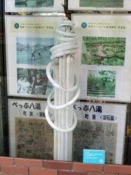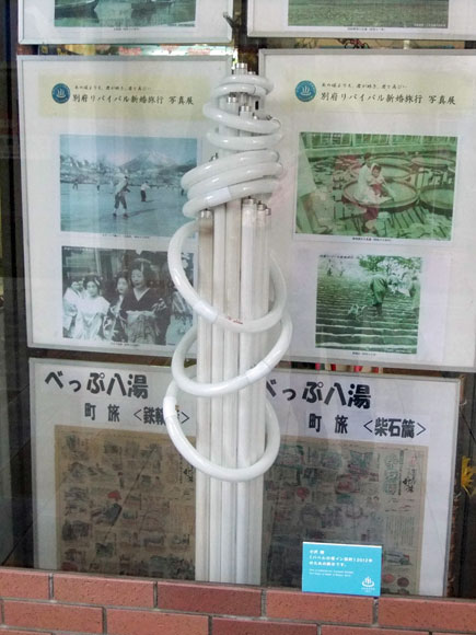 | One of the great things about this festival is that it's not just a one-off event that happens every few years but provides long-term basis for art activities in Beppu. The unused shop spaces and houses, that were rennovated and turned into exhibition venues for the previous festival, have been constantly used as such, as well as providing artists-in-residence schemes, and promoting local traditional handicraft to tourists. | |