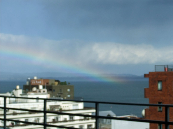 Stopping at Tokiwa Department Store for lunch, we see a rainbow out of the window. (Apologies for a very blurry photo!) |