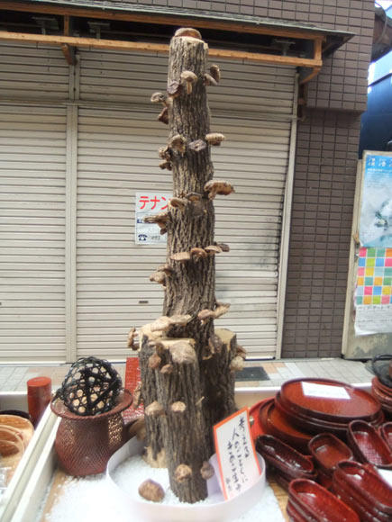 A shiitake tower. Shiitake is another well-known local produce, so I bought a bag of dried shiitake here. |