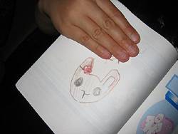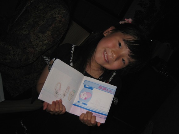 Karen showing me her portrait of Usako... |