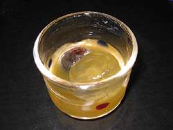 Sunday 20 April: An evening out in Osaka with Noriko - dinner at Mamesuke in Umeda. A glass of cloudy plum wine inbetween sake. |