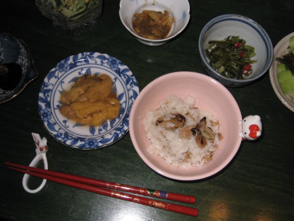 Eaten at lunch & dinner, with rice cooked with Hiroshima oysters - another gift, this one from Yoko. Heaven! |
