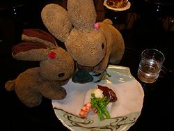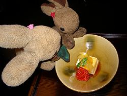 The pudding: cream caramel with fresh fruit - right size for Usakousa :-) |