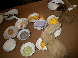 Hanako eyeing Usako, Terre eyeing Kousa (making sure they won't eat all the dim sum?!) |