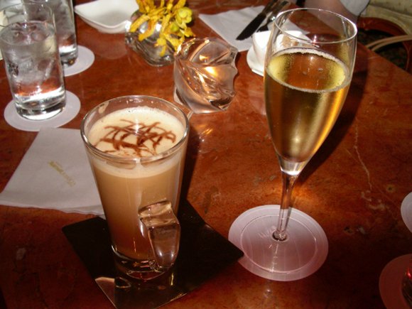 My cousin Yukie and I opt for booze rather than coffee... her hot Godiva liquer au lait & my glass of Pommery. |
