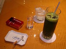| 7 November: Afternoon out shopping in Nagoya. Smoking in the street is banned almost everywhere in big towns, so I end up popping into cafes every couple of hours and chain-smoking. The iced green tea is nice & refreshing on a hot day. |