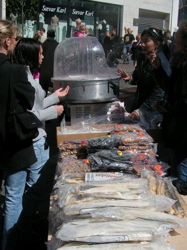 A stall selling candy floss, dried fruit & nuts - and dried fish, of course.