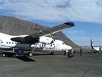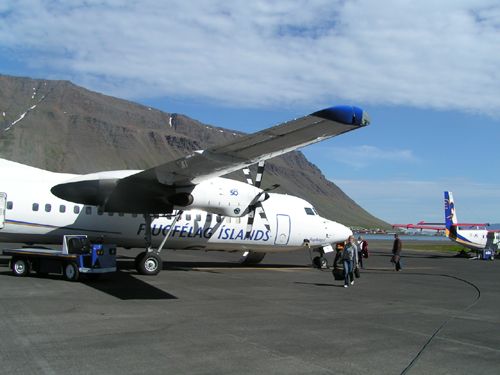 10:40am: Our aircraft shortly after landing. The town of Isafördur can be seen on the other