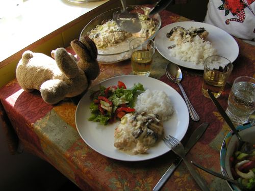 Haddock with leek & mushroom, rice, salad, orvieto classico...