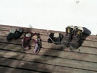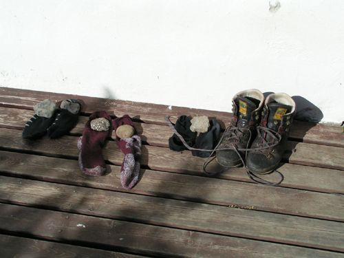 people seem to take their socks off too and place stones on them so that they
