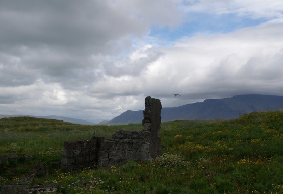 | On the southern part of the island, there used to be a village, uninhabited since 1943. We walk around, looking at the ruins of the houses. | |