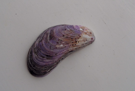 ...and among them we see broken bits of shells. Going closer to the sea, we manage to find this one to take home. No idea what kind of shellfish it is, or how the flesh would have tasted. |
