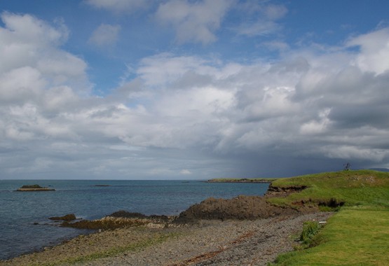 | Having done the round of the western part of the island, we walk back, enjoying the scenery, the fresh air (and occasional rain.) | |