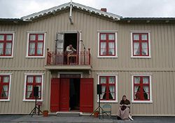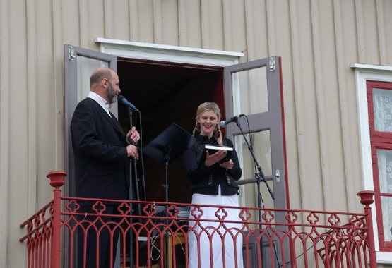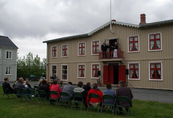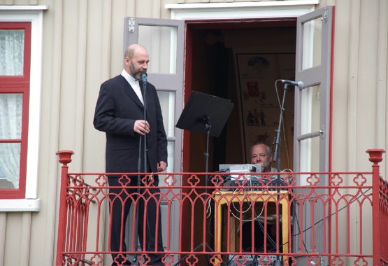 From the first-floor balcony of this house, Hilmar Örn Hilmarson, Steindór