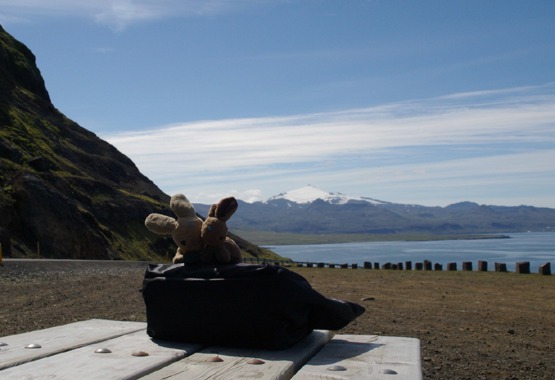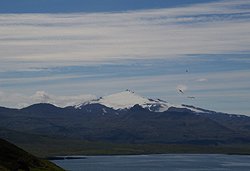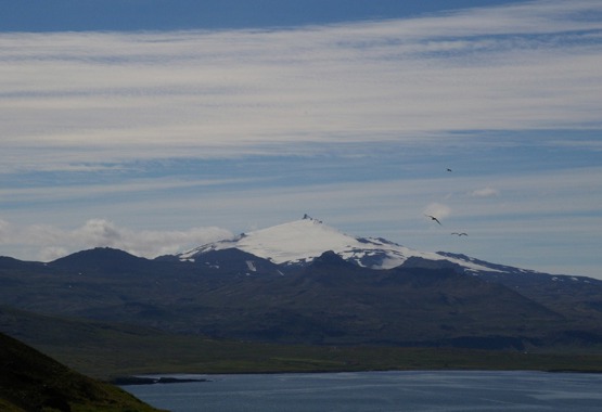 Further down the road, we stop by for a view of the Snaefellsjökull (glacier). The