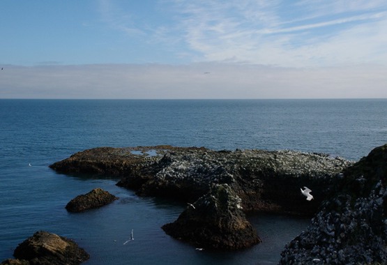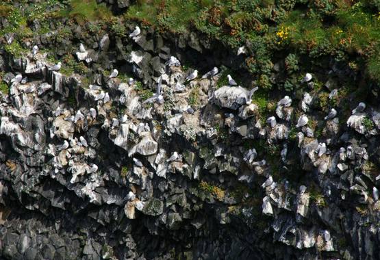 Here as well - a lot of the white "spots" in the photo are kittiwakes, sitting against white rocks.