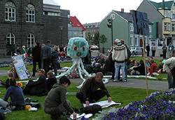 in protest against the dam project. Today some of them are in town, having a picnic on