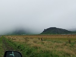 Sunday, 29 August: After the late night, we are all slow in the morning and need several cups of coffee. We're finally ready to hit the road at 1PM. In contrast to yesterday's cloudless sunny weather, it's a grey day with very fine drizzle: typical Icelandic weather. Which means we get to see the same scenery in completely different light as we drive home. | |