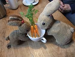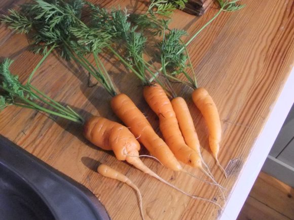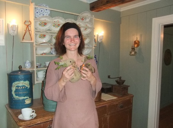 | Linda, who looks after the museum, makes us coffee in the old kitchen, among the exhibits, and then goes out to the garden and digs some fresh carrots for Usakousa. What a hospitality! | |