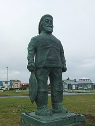 | A statue in memory of all the fishermen lost in the sea. (Is that a halibut in his hand?) |