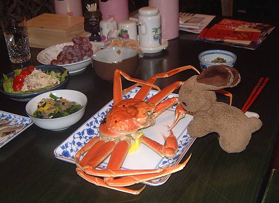 Kousa giving a crab (fresh from Echizen) an attitude.