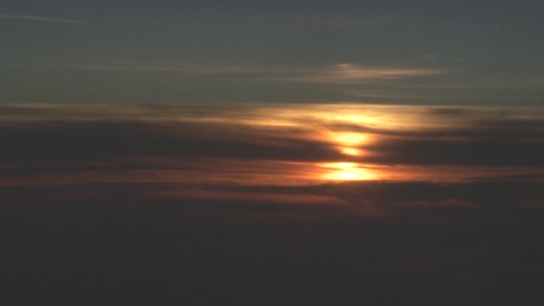 We finally take off in the early evening, and halfway during our flight we get to see an intense sunset.