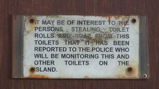| A sign on the door to the public toilets at the Bressay Harbour. |