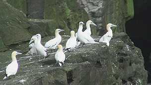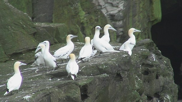 | And now cliffs full of kittiwakes - like the ones we saw in Iceland last summer, but the Shetland kittiwakes are not as noisy as their Icelandic counterparts. And here we get really close up to the cliffs! |