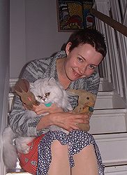 By early evening it's stopped raining, and we go over to Alma & Egill's for a dinner party. In fact we had been hoping to have a (non-meat) BBQ, but of course we had to change our plan due to the weather. After a meal of fish green curry and salad, we had a selection of Icelandic cheese - with delicious home-baked Rosemary bread - and chatted late into the night. (Left: Alma's cat wanting to be friendly with Kousa, who's having a think about it, while Usako is slightly offended that no one is paying her attention...)