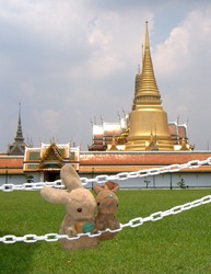 Usako & Kousa at the Wat Phra Kaeo (Royal Pantheon in the background.)