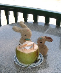 Drinking coconut juice to cool down from the glaring sunlight. |