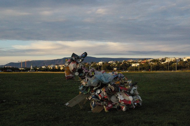 An exhibition of sculptures & clothing by teenagers, made solely with found rubbish. Some of them are very impressive. |